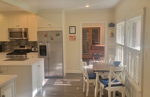 4 spacious bedrooms, plus a queen Murphy bed in the library, and twin sofa bed in upstairs family room.