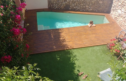FAMILIES ONLY. Rural house in Penedès (Catalonia). Renovated farmhouse located in the village of Sant Pau d'Ordal, with 5 bedrooms and a beautiful porch-covered courtyard with a pool. Here, you can feel secluded, enjoy a peaceful calm while being close to destinations like Vilafranca, Barcelona, Sitges, or Montserrat. The Penedès is known for the quality of its wines and offers a wide range of tourist activities. > No parties, speakers, or music devices allowed. There are neighboring houses nearby, so quiet hours must be respected