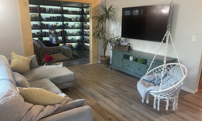 This home isn’t simply a rental; it’s my primary home, and I welcome you to stay in it while I’m traveling. Instead of seeing unadorned walls, you’ll experience a warm, welcoming atmosphere. The pool provides the perfect respite from the summer heat. Even those who don’t enjoy reading appreciate the tranquility of the library. The backyard is fenced, so it provides privacy for intimate gatherings, in addition to offering a level of safety for your pets. The home is located within walking distance to the Indian River where you’ll find bars, restaurants, and occasional festivals at our local park. There’s a boat ramp nearby, but if you’re not bringing your own vessel, there are plenty of tours available (fishing/sightseeing/air boat excursions). Comfy beds, well-stocked kitchen, kick ass Bluetooth speaker…these are just a few of the perks.