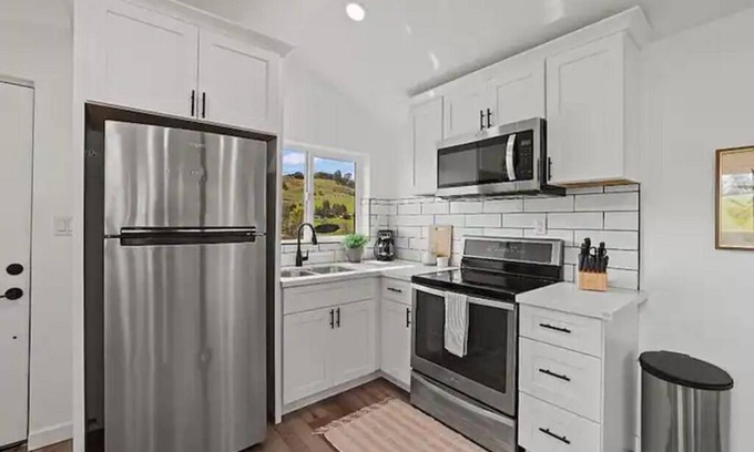 Experience the serenity of "Farmhouse Villa", a luxurious suite tucked beneath the shade of an ancient oak tree. Immerse yourself in the pristine ambiance of our Oasis pool and unwind on the beautiful deck while soaking in breathtaking sunsets. With a full kitchen, indulge in culinary delights amidst this tranquil retreat where modern elegance meets natural beauty. Whether you're seeking a peaceful escape or a romantic retreat, "Farmhouse Villa" promises an unforgettable experience.