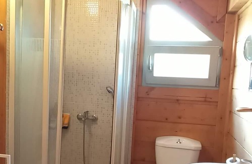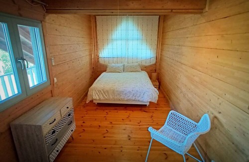 This is a wooden cottage, 222 sqm. Two large bedrooms upstairs, two connected bedrooms downstairs. All rooms have Air Conditioning except one. Full kitchen and kids friendly. There is wifi,no TV.