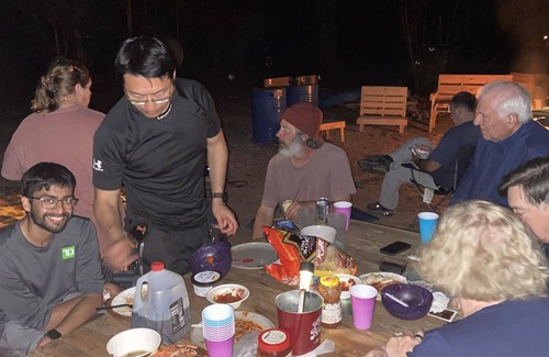 KITCHEN- *We have a small outdoor kitchen with grill, griddle, stove, utensils, and picnic table. Basic cooking supplies are provided in your unit (oil, salt, pepper, etc) basic cookware, utensils, disposable and washable cups and plates. You are welcome to pick from the garden when its complete. There is also a common area to eat and hang out plus our community fire pit for all to enjoy.