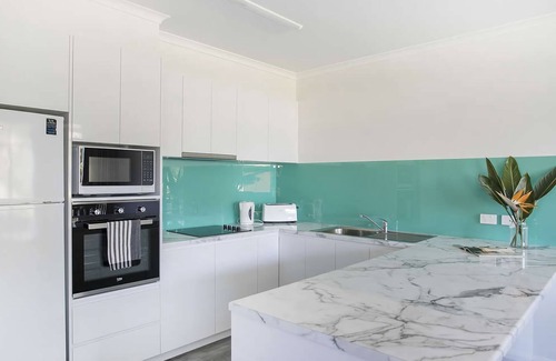 Our apartment is perfect for a family holiday or a couples getaway. Enjoy the convenience of being just moments away from the beach, while also having access to all the amenities of a modern apartment. Our two bedroom apartment is equipped with all the comforts of home, including a fully equipped kitchen, bathroom and two bedrooms. The two bedrooms are large and comfortable, one with queen size bed the other with 2 sets of single bunks.