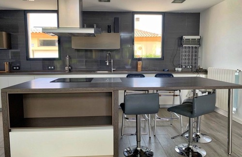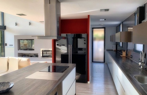 You have a spectacular kitchen, fully equipped, with central island. 3 barbecues: wood, carbon, and American gas. And also: