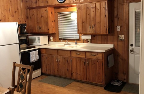 Lake side 2 Bedroom / 1 Bathroom cabin that sleeps 4. Cabin includes access and use of the dock which is shared only with one other cabin if occupied during your stay. Cabin is situated on Northeast side of the Fence lake which is the largest lake at over 3400 acres and a part of the Fence lake chain which includes 10 lakes total. Cabin has window AC units, high speed internet, smart tv, and includes access to 2 kayaks and a propane grill. Cabin is only 15 minutes from downtown Minocqua with many bars, restaurants, and shops to explore and just 5 minutes from Lake of the Torches Resort Casino.
