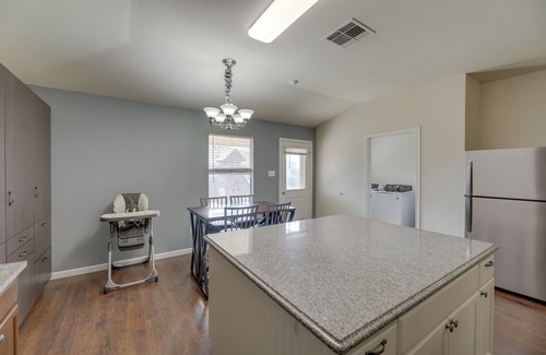 Escape to the charming town of Elgin, Texas, and stay at this spacious 4-bedroom, 2-bathroom vacation rental house. With its bright and inviting atmosphere, this house is the perfect home-away-from-home for your next getaway. Enjoy the nearby attractions such as the historic downtown area, the Elgin Art Association Gallery, and the Elgin Farmers Market. After a day of exploring, relax on the patio with a refreshing beverage as you watch the kiddos play on the playset in the backyard.