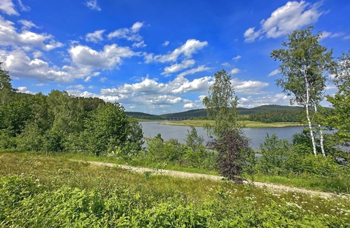 Welcome to the Seeblick holiday village on Lake Eixendorf. Spend an unforgettable holiday in these charming tiny chalets that offer peace, relaxation and incredible views of the lake. The quaint holiday village with around 10 lovingly designed tiny chalets is located directly on picturesque Lake Eixendorf and offers the perfect backdrop for families, friends and couples looking for a break. Each tiny chalet is modern and comfortably furnished and features a fully equipped open plan kitchen and a spacious living-dining area. With three separate bedrooms and two bathrooms, there is enough space for both comfort and privacy. The private terrace with fireplace grill is the perfect place to enjoy the view of the lake and simply relax. Relax on the garden furniture, under a parasol or on a comfortable sun lounger. A private parking space directly at the chalet is available for your convenience. The tiny chalets are also equipped with amenities such as a TV, dishwasher and WiFi to make your stay as pleasant as possible. The Upper Palatinate Lake District offers a variety of activities for every guest. Whether you want to spend a relaxing holiday with your family, go on active cycling and hiking tours or simply enjoy a quiet break - the region offers something for everyone. Explore the diverse landscape of Lake Eixendorf on foot or by bike. Numerous trails lead along the lake, up nearby mountains and through unique moorland. The immediate vicinity offers ideal conditions for anglers, boaters and golfers to pursue their passions. Discover the fascinating Upper Palatinate Forest and experience an unforgettable holiday at the Seeblick holiday village on Lake Eixendorf. We invite you to treat yourself to a break and experience an unforgettable stay in these enchanting surroundings.