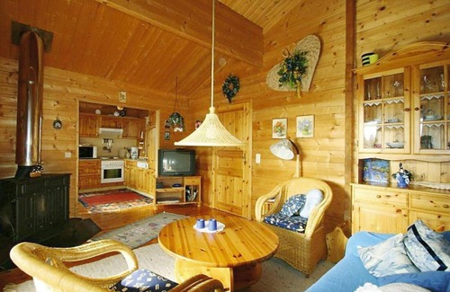 Layout: Living room(TV(satellite), dining table, fireplace), open kitchen(hob(4 ring stoves), toaster, coffee machine, oven, fridge), bedroom(double bed), bedroom(bunk bed), bathroom(bathtub or shower, washbasin, toilet), storage, tumble dryer(shared with other guests, paid), sauna(shared with other guests, paid), washing machine(shared with other guests, paid), heating, terrace, garden furniture, BBQ, parking, high chair, baby crib(paid), Laundry Package for a fee