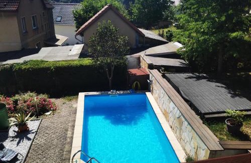 Ferienhaus Elsa offers accommodations in Kranichfeld, 12 miles from Bauhaus University, Weimar and 12 miles from Belvedere Palace. This property offers access to a balcony, free private parking, and free Wifi. The garden views are a highlight at the vacation home's pool. Providing a terrace and pool views, the vacation home includes 1 bedroom, a living room, satellite flat-screen TV, an equipped kitchen, and 1 bathroom with a shower. Towels and bed linen are provided in the vacation home. The property has an outdoor dining area. During warmer months, you can make use of the barbecue facilities and eat on the private patio. Guests at the vacation home can enjoy hiking nearby, or make the most of the garden. Schiller's Home is 12 miles from Ferienhaus Elsa, while Goethe House is 12 miles away. Erfurt-Weimar Airport is 22 miles from the property.