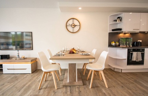New, modern holiday homes right on the Baltic Sea for a perfect break from everyday stress with sun, beach and sea. Whether with the family, in a group or as a couple - enjoy the good feeling of being welcome! The Baltic Sea resort of Damp always offers exactly the right thing: from relaxed walks on the beach and wellness in all its facets to exciting children's adventures and action activities on land, water and in the air. Since everything in Damp is centrally located, you can explore the entire town on foot or by bike. There are also various other places around Damp that are worth a visit. These include Kappeln, the Viking settlement of Haithabu and the cities of Kiel and Flensburg. The first port of call for families in Damp is the extensive sandy beach. Here the children can dig in the sand to their heart's content and swim against the waves while the parents make themselves comfortable in the sand or in a beach chair. There is also the "Viking Golf" mini golf course right on the beach. For a break, there are delicious restaurants, small shops and cozy cafes on the beach promenade. The tropical adventure pool in Damp with its indoor and outdoor pools, slides for all ages and a northern lights show will never let you get bored. Värmland - Germany's first bikini and swimwear sweat lodge village - also invites you to relax in various saunas. Right next to the discovery pool, you can "play a quiet game" in the Kubbsala bowling center. Highlights included: All consumption-dependent energy costs, final cleaning. Laundry packages and parking space near the holiday home. Childcare for children aged 6-12 during school holidays between 5 p.m. and 8 p.m. (Tuesdays, Thursdays and Saturdays). Important note: A dog can be booked on request (cost on site EUR 20 per night).