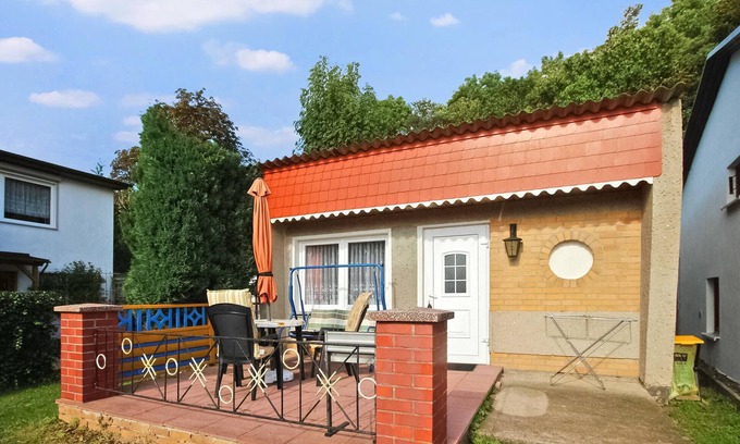 Only approx. 200 m from the fine sandy Bodden beach, the approx. 26 m², simply furnished holiday home for up to 3 people is located within a small residential area on the owners' separate neighbouring property. The railway station and a popular smokehouse are just a few minutes' walk away, and the holiday home has a combined living room/bedroom (wardrobe-double bed, sofa bed, small dining table with chairs, flat-screen TV, radio/CD player, oil radiator), a small kitchen (electric hotplates, fridge, coffee machine, toaster), a bathroom with rainforest shower/WC and a furnished terrace with barbecue. There is a public car park approx. 20 m away and you can park in front of the property for loading and unloading. The total price includes final cleaning, water and energy costs as well as bed linen and towels. Pets are not allowed in this property.