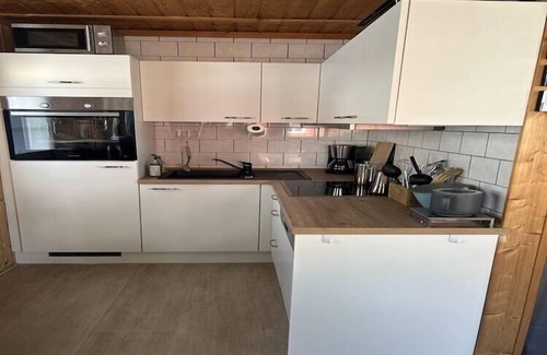 Do you like nature, peace and independence? Then this holiday home with sauna and fireplace in Scandinavian style is right for you. In the small, car-free and family-friendly holiday village in an idyllic location, directly on Lake Userin, you can quickly forget everyday life and stress. You live on the edge of the Müritz National Park, where you can go endless hiking, cycling or paddling (canoe rental nearby). You reach the lake after about 130m, a lonely bathing jetty is part of the holiday village. A child-friendly swimming area with a sandy beach, swings and water slide is also only about 200m away. The cozy house offers three bedrooms for up to six people to retreat to on two floors and was renovated in 2022. A well-equipped kitchenette with dishwasher, the furnished terrace, shower room with toilet and sauna, television and WiFi ensure a pleasant stay. The open kitchen, dining table and living room with fireplace invite you to spend evenings together with food, games or stories. A partially covered terrace with a grill adjoins the living room. If you have any questions on site, our friendly manager will be happy to provide you with advice and support. Dogs are not allowed in the complex. The holiday village also has a playground, as well as a nearby beach volleyball and basketball court, including a table tennis table. In the village of Userin there is a small grocery store for daily needs. Places worth seeing such as Waren, Röbel or Rheinsberg are beautiful destinations in the area. Neustrelitz is only 7km away and is worth a visit as an old residential town. Here you will also find various restaurants, cinemas and other cultural options. There is a zoo and an open-air museum (Slavic village), both of which are particularly suitable for children. Activities nearby: Boat and canoe rentals at Useriner See, a pier is in the immediate vicinity of the holiday village. Boats and bicycles are available at reception. The Müritz National Park begins directly at the holiday park and you can endlessly explore the untouched nature on foot, by bike or by canoe.