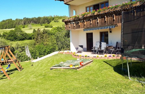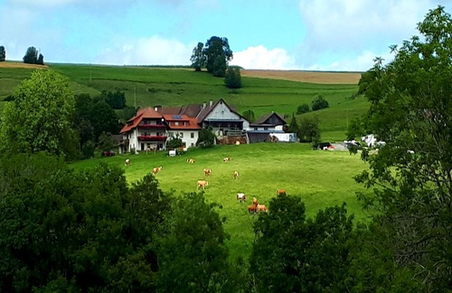 Die Ferienwohnung befindet sich im Erdgeschoss unseres Hauses und verfügt über einen separaten Eingang. Im Freien, direkt vor der Ferienwohnung befindet sich eine große Terrasse mit Gartenmöbeln und Grill. Auf der angrenzenden Wiese befindet sich ein Kinderspielplatz mit Schaukel, Wippe, Rutsche, Sandkasten und Riesentrampolin...also ein Paradies für Kinder. Ein Bolzplatz zum Fußballspielen befindet sich direkt hinter unserer Garage. Der Autostellplatz ist direkt am Haus. Gaststätten und Einkaufsmöglichkeiten befinden sich im 1 km entfernten Nachbardorf Nöggenschwiel. Sie und Ihre Kinder haben die Möglichkeit, aktiv am Leben auf unserem Bauernhof teilzunehmen. Gerne dürfen Sie während den Stallzeiten beim Versorgen der Tiere mithelfen. Eine Traktorfahrt auf die Weide macht Ihren Kindern bestimmt große Freude. Die Ortschaft Heubach liegt zwischen dem Hauptort Weilheim und dem Ortsteil Nöggenschwiel im Südschwarzwald, das durch seine viele Tausend Rosenstöcken auch als 'Rosendorf' bekannt ist. Heubach selbst ist sehr ruhig gelegen, ideal für den Gast der Ruhe und Erholung sucht. Hier kann man in sauberer Landschaft abwechslungsreiche Wanderungen auf den gut ausgeschilderten Rosenwanderwegen unternehmen. Im Winter sind von hier aus verschiedene Skilifte in 30-40 Minuten erreichbar. Die Welt- und Kulturstädte Basel und Zürich liegen nur 50 bzw. 60 km entfernt. Bis zum Bodensee benötigen Sie eine gute Fahrstunde, ebenso nah liegt das französische Elsaß. Der schöne Schluchsee und Titisee sowie der höchste Berg des Schwarzwaldes, der Feldberg sind ca. 35 km entfernt. Bei Ihrer Anreise erhalten sie eine Konuskarte, mit dieser können sie kostenlos mit dem Bus und Bahn reisen.