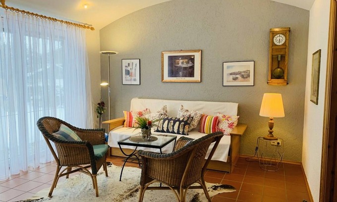 Unsere Ferienwohnung liegt in einem sehr ruhigen Wohngebiet. Sie ist ausgestattet mit 1 Wohn-/Schlafraum und einem separaten Schlafzimmer. Pkw-Stellplatz ist vorhanden. Gesamte Wäsche wird gestellt.
