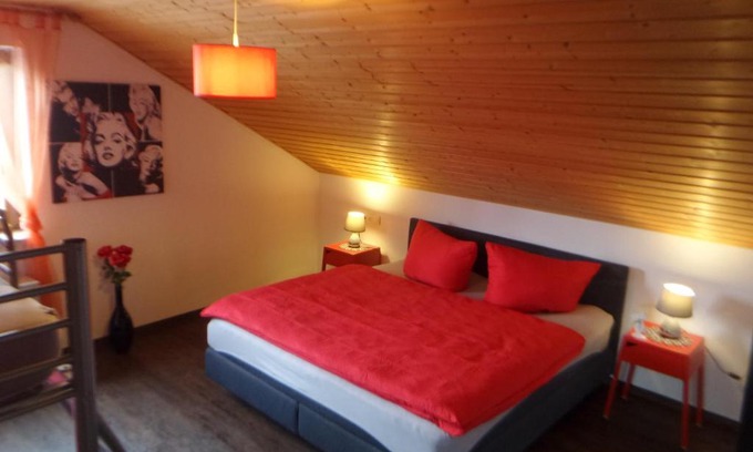 Ferienwohnung Glückskinder is located in Rust, just 0.8 miles from Europa-Park and 20 miles from Messe Freiburg. This property offers access to a patio, free private parking, and free Wifi. Outdoor seating is also available at the apartment. Featuring a balcony and quiet street views, the spacious apartment includes 3 bedrooms, a living room, satellite flat-screen TV, an equipped kitchen, and 1 bathroom with a shower. The apartment offers bed linen, towels, and daily room service. Freiburg Cathedral is 22 miles from Ferienwohnung Glückskinder, while Freiburg Central Station is 24 miles from the property.