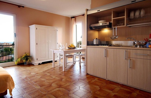 This charming Ligurian-style holiday complex is quietly located on the outskirts of San Bartolomeo al Mare and blends harmoniously into the Mediterranean landscape. The 24 residential units offer satellite TV, free WiFi and a furnished balcony or terrace. The apartment type offers space for up to five people with a size of approx. 37 square meters. It has a double or twin room and a living area with a pull-out sofa bed. Depending on requirements, an additional bed can be accommodated either in the bedroom, the living area or in the entrance area. Guests can enjoy culinary offerings in the restaurant, the snack bar or the bar. The sun terrace with loungers and the communal outdoor pool (opening times still to be clarified) offer relaxation. A bicycle rental service, tennis courts and a playground are also available. The quiet location in the Gulf of Diano Marina makes the residence the ideal retreat. Highlight: WiFi, all consumption-dependent energy costs, final cleaning (except kitchenette) and linen package included
