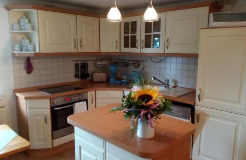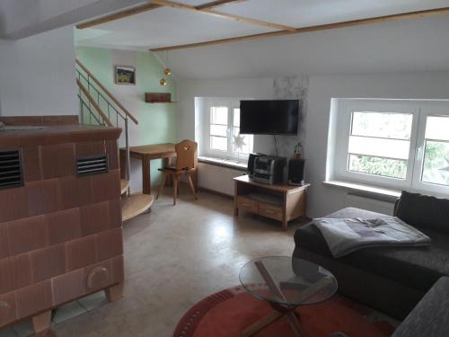 Offering a garden, Ferienwohnung Körnerberg provides accommodations in Klingenthal. With free private parking, the property is 10 miles from German Space Travel Exhibition and 27 miles from Market Colonnade. Mill Colonnade is 27 miles from the apartment and Hot Spring is 27 miles away. Providing a terrace and mountain views, the apartment includes 1 bedroom, a living room, satellite flat-screen TV, an equipped kitchen, and 1 bathroom with a walk-in shower and a bath. Towels and bed linen are featured in the apartment. The property has an outdoor dining area. Guests can make the most of the warm weather with the property's barbecue facilities. Skiing, cycling, and hiking are possible within the area, and the apartment offers ski storage space. Göltzsch Viaduct is 29 miles from Ferienwohnung Körnerberg, while Aschbergschanze is 3.1 miles away.