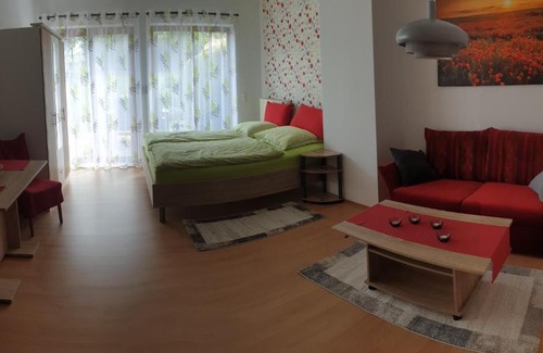 BathroomBathtub, Toilet, Private Bathroom, Bathtub or shower, TowelsMedia & TechnologyTV, Radio, Satellite channels, Flat-screen TVKitchenKitchenette, Refrigerator, Electric kettle, Kitchenware, Oven, Stovetop, Toaster, Coffee machine, Dining tableLiving AreaSitting area, Sofa, Dining areaGeneralHeating, Private entranceBedroomWardrobe or closet, LinensViewGarden viewOutdoorsTerrace, Outdoor dining areaRoom AmenitiesDrying rack for clothing, Sofa bed |
