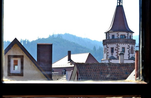 The buiding is a listed building and is in the most picturesque lane of Gengenbach. The house has 3 flats, two of them are holliday apartments. The main entrance is at a place called " Mercyscher Hof" at easy reach.The apartment "Turmblick" has 67qm and a beautiful view to the very attractive towers of Gengenbach, the "Niggelturm" and the lane "Engelgasse". The flat is in the 1. floor, has a balcony, partly covered and a panoramic sight over the "Mercyschen Hof".The house has been carefully renovated and restaured. An underground parking is available in 100m reach.