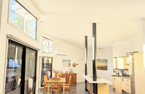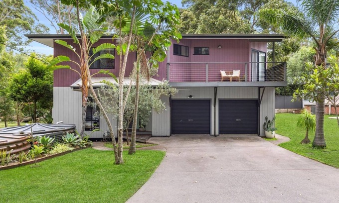 Escape to this stunning elevated beach house just steps from the pristine sands of South Durras Beach. Enjoy the soothing sound of waves and the refreshing ocean breeze as you relax on the private balcony.