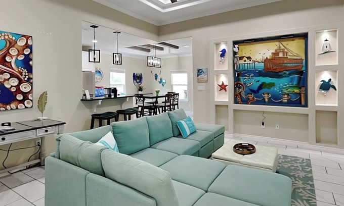 Welcome to Ferryman’s Landing, a charming coastal getaway nestled in the heart of Aransas Pass, Texas. This “smart home” with 3 bedrooms and 2 bathrooms blends modern comfort with small-town charm, providing the perfect retreat for families or groups of up to 10 guests looking to relax, explore, and make lasting memories.