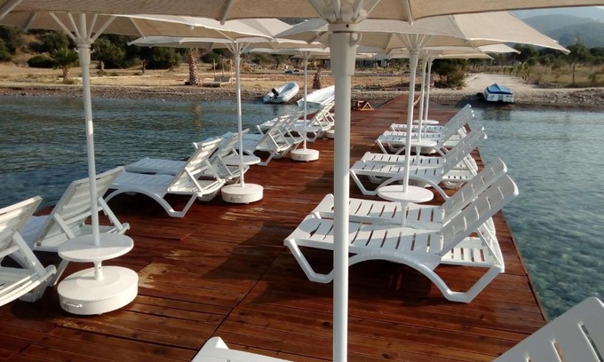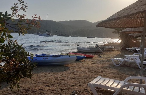 Feslegenbuku Ahsap Evler is situated in Bozalan and offers a terrace, a restaurant and a bar. Set on the beachfront, this property features a seasonal outdoor swimming pool, a garden and a shared lounge. The holiday home is fitted with 1 bedroom, 1 bathroom, bed linen, towels, a flat-screen TV with satellite channels, a fully equipped kitchen, and a patio with sea views. Free private parking is available at the holiday home. Feslegenbuku Ahsap Evler has a barbecue, along with a private beach area. The nearest airport is Milas-Bodrum, 51 km from the accommodation, and the property offers a paid airport shuttle service.