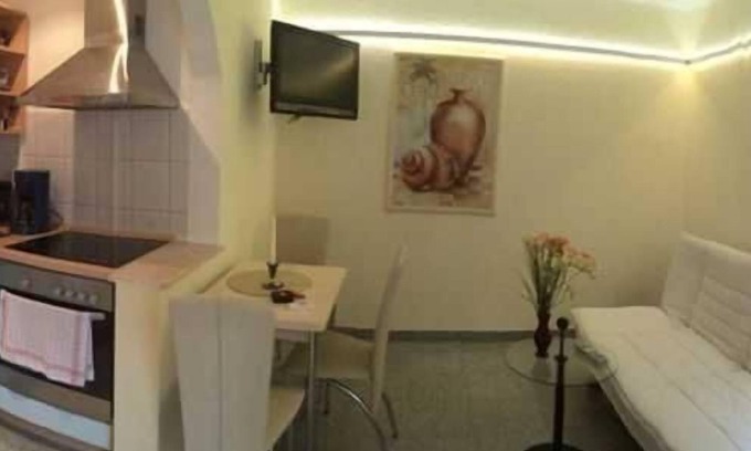 Small apartment with a cozy sitting area with flat screen. Kitchenette with a small dining table. Separate bedroom with double bed and wardrobe. In a niche in the hallway area there is a Murphy bed, which is an extra bed for the 3. Person serves. Shower / WC.