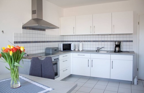 Our cozy apartment is located in the quiet Bad Münstereifel-Bergrath. It is about 51 m2 and consists of an open plan living room with kitchen, a bedroom, a bathroom with walk-in shower and a sun terrace. The apartment is a separate apartment in our house and a private entrance door to reach. To the apartment belongs a parking space for your vehicle on our property. You can also store your bikes in the garage.