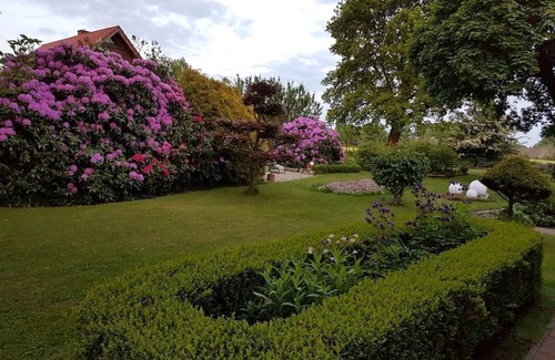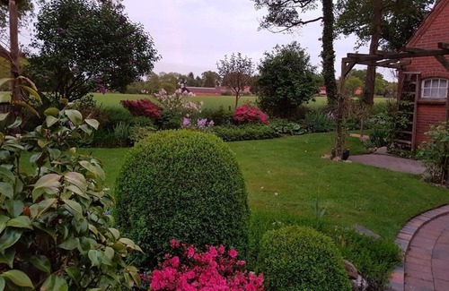 MOIN in Rhodoland Ammerland The Landhaus Westerlo is located in the rhodo- and cyclist paradise Ammerland, close to the Zwischenahner Meer and the North Sea coast. We offer two barrier-free apartments, with electrically adjustable box spring beds and two apartments upstairs. The apartments are equipped with rain forest showers and fitted kitchens, as well as with large Smart TV. We have finished the construction of these apartments just at the end of 2017, they are located in a new building on a former farmstead, in beautiful rural surroundings. The building is a verklinkerter timber frame construction and is heated by a floor heating, so we have here a very pleasant living environment. The windows are triple glazed and we have placed special emphasis on sound insulation, so you can come to rest here well. The parking lot is in front of the house and there is a laundry room. For recreational activities, our area offers a variety of opportunities, but if you want to spend their day here, there is the possibility of using the barbecue hut and the beautiful garden, overlooking the meadows. Directly in the building complex is a naturopathic practice, where they have the opportunity to do something for their health. www. naturheilpraxisschnitger. de