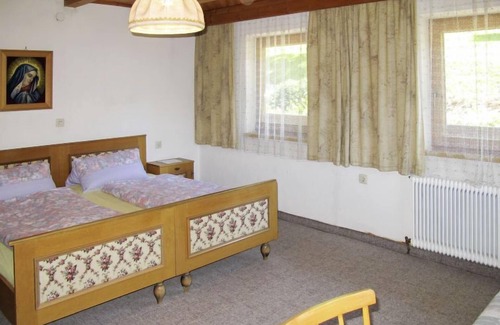 4-room apartment 90 m2 on 1st floor. Simple and rustic furnishings: 1 room with 1 sofabed and 1 double bed. 1 room with 1 bed, 1 sofabed and 1 double bed. 1 room with 1 bed, 1 double bed and shower. Kitchen-/living room (oven, dishwasher, 4 ceramic glass hob hotplates, electric coffee machine) with dining table. Shower/WC. Heating. Wooden floors, carpet. Balcony. Beautiful panoramic view of the mountains and the valley. Facilities: baby cot. Internet (WiFi, extra). Please note: non-smokers only. When there are less than the maximum number of guests staying at the property, not all of the housing units will be available for use.