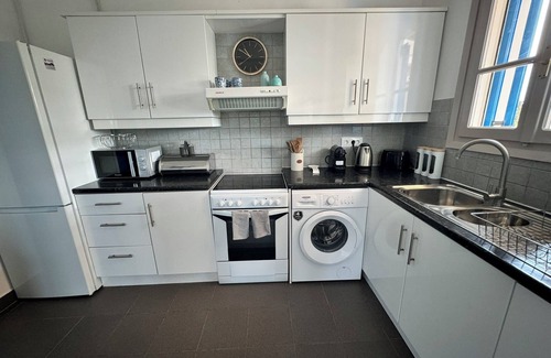 The living accommodation is split across three floors with the main living spaces, kitchen and outside dining area on the first floor. The kitchen is modern and well equipped, there's plenty of space to whip up a Greek meal to enjoy in one of the many outside (or inside) dining spaces.