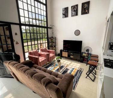 Finca Boutique Los Laureles Villeta is a recently renovated villa in Villeta where guests can make the most of its infinity pool, open-air bath, and garden. This villa features air-conditioned accommodations with a balcony. The villa also provides free Wifi, free private parking, and facilities for disabled guests. Providing a terrace and mountain views, the spacious villa includes 4 bedrooms, a living room, satellite flat-screen TV, an equipped kitchen, and 5 bathrooms with a shower. A private entrance leads guests into the villa, where they can enjoy some wine or champagne and fruit. The property has an outdoor dining area. À la carte and continental breakfast options with warm dishes, fruit, and cheese are available. Guests can enjoy a meal at the on-site restaurant, while packed lunches are also available upon request. For guests with children, the villa offers an indoor play area. If you like to discover the area, cycling, fishing and hiking are possible in the surroundings and Finca Boutique Los Laureles Villeta can arrange a car rental service. El Dorado International Airport is 52 miles away, and the property offers a paid airport shuttle service.