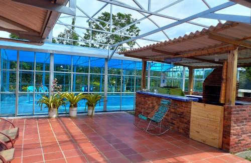 Featuring garden views, Finca Buganvilia in Anolaima features accommodations and a garden. This property offers a private pool and free private parking. Guests can access the country house via private entrance. The country house provides guests with a patio, pool views, a seating area, a flat-screen TV, a fully equipped kitchen with a fridge and a stovetop, and a private bathroom with shower and free toiletries. At the country house, each unit includes bed linen and towels. El Dorado International Airport is 37 miles from the property.