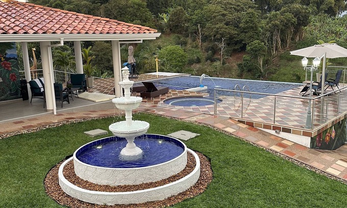Near many touristic areas in between Armenia and Montenegro. A great place to stay with breathtaking views of the country side. A relaxing pool area to lounge and enjoy the beautiful weather. Short distance from all recreational parks within the department of El Quindio. Go paragliding in the beautiful skies of Armenia. Take a trip down the "Rio de la Vieja". Enjoy a good time with friends on the state of the art soccer field on property. Close to all recreational parks “el parque del cafe, panaca, los arrieros, recuca and more!!! Individuals room for rent as well, contact property for details.