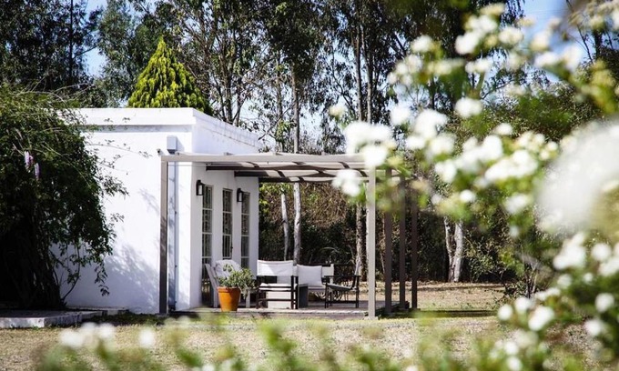 At this colonial style ranch house with elegant furnishings and an outdoor swimming pool, guests can enjoy a massage session or horseback riding trip just a 20-minute ride from Salta City. Finca Valentina features upscale country-house atmosphere. It has stylish off-white furniture and walls and red-tile floors. There is a living room with a fireplace and a library. Wi-Fi is free. Guests can also relax with a book by the shade in the open Spanish gallery overlooking the garden. Breakfast with homemade pastries, honey and jams is served in the restaurant with a view of the pre-Andean mountains. At dinnertime, local cuisine dishes can be enjoyed with a choice of fine regional wines. The rooms feature cream-color walls and bedspreads with rustic décor details and private bathrooms. Laundry services are available. Valentina is a 20-minute drive from El Aybal Airport and shuttle services can be arranged.