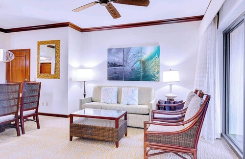 Picture yourself pampered in luxury at the Marriott Ko Olina Beach Club, where every moment is infused with the magic of the island. From the moment you step into your villa, you'll be captivated by stunning ocean vistas and the serenity of a picturesque lagoon. Start your day with the gentle caress of sea breezes and end it with the fiery hues of a mesmerizing sunset.