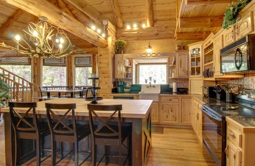 Picture your ideal wilderness retreat, and then take it up a notch with this beautiful 3-bedroom, 3.5-bath Pinetop-Lakeside cabin! Empty your mind and breathe in some fresh mountain air on the Mogollon Rim Trail, enjoy the sunshine at Woodland Lake Park, or hit the links at one of the nearby courses. After, treat yourself to a mellow evening by the fire, or a relaxing soak under the stars. With this vacation rental's endlessly cozy vibes and luxury-cabin features, you might never want to leave!