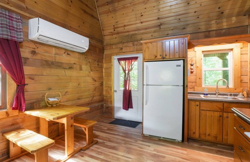 Fireflies Hollow | Couples Cabin with a pond is located in McArthur. Fireflies Hollow | Couples Cabin with a pond provides accommodation, featuring Bedding/Linens, Fireplace/Heating, Kitchen, among other amenities. This Cabin features Bedding/Linens, Fireplace/Heating, Kitchen, to make your stay a comfortable one.