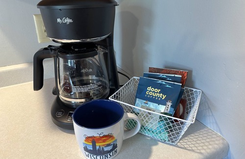 From your cottage you can enjoy a starry night with adult beverages or mornings with beautiful birdsongs and hot coffee. Walk two minutes to the Ephraim beach for some sun, sand, swim and sunsets. Join the other guests in our surrounding cottages for stories, laughter and smores around the fire pit which boasts seating for 12 in sturdy rockers that support up to 350lbs (plus a bench that supports up to 500 lbs).