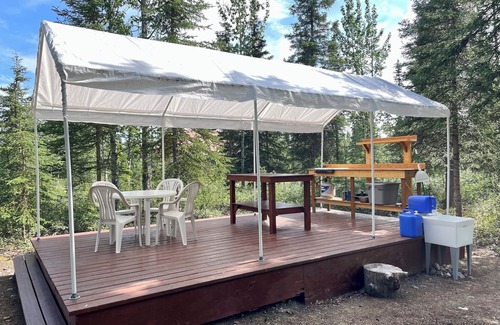 Cooking and food storage: A guest-shared, covered outdoor cooking area is available for use. This area is equipped with a three-burner propane stove, basic cookware, dishes, enamel mugs, utensils, dish soap, and paper towels. Water from our well is provided for drinking, cooking, and washing (our well water is safe for drinking–and delicious!). We service the outdoor cooking area at least once daily. Our property is adjacent to the Wrangell St Elias National Park and Preserve, home to wild animals, including bears. We ask that you please clean up well after food preparation. We require that guests not store coolers, trash, and other scented items, such as soaps, outside the cabin or leave them unattended on the property.