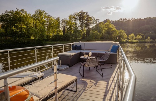 Best-rates for the Mettlach boat rental starts from $436 per night with includes Entertainment, Internet, Ocean View, Security/Safety, Sports/Activities, Bedding/Linens, Wellness Facilities, Child Friendly, Laundry, Air Conditioner, View, Barbecue/Outdoor Cooking, TV, Balcony/Terrace, Kitchen, Parking, Pet Friendly With all other amenities. Float Homes offers a wide range of floating homes, houseboats, and water chalets, ensuring each traveler finds their ideal water escape, whether planning a water getaway, a family vacation, or a pet-friendly retreat with the whole group.