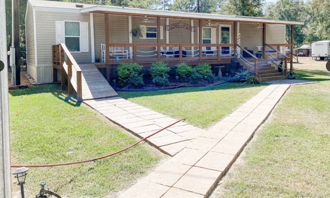 Fantastic Getaway for Fisherman and/or the family. Just steps from Mill Creak Park entrance. Great for boating, fishing, swimming and all your lake fun. Home comes fully furnished and includes an outdoor kitchen, outdoor restroom and outdoor shower. Also, includes a fish cleaning station. Please bring your own hotspot if wifi is required as local availabilty is inconsistent.