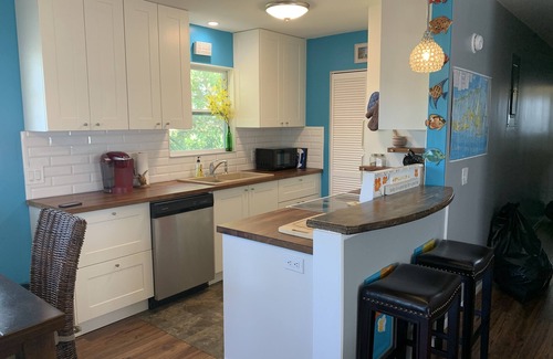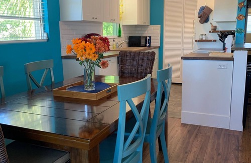 *WINTER 2025 now available!!! (Dec 2025 - Mar 2026). Book quickly! Cozy, clean, canal front home is located in a quiet, family friendly, National Key Deer Refuge. 3 bedroom, 2 baths with screened in porch, and plenty of outdoor living area underneath. Master bedroom with king bed with attached bathroom. One guest bedroom with queen bed, and the other with 2 twins, 2nd bathroom conveniently located inbetween. Fully equipped (recently updated!) kitchen with attached washer/dryer combo. Dining area (seating for 6) additional table for 4 on screened in porch. Additional amenities include Wifi, Netflix, Amazon (movie purchase options available) and basic cable, kayaks with rollers, 2 adult and 1 child bike, 50' composite dock, large fish cleaning table, plenty of outdoor seating with shade umbrellas and hammock, shed is welcome to guests with beach supplies, kiddy pool, few fishing poles/lobster nets, and such. Propane as well as charcoal grill on site for cooking your fresh catch. Short 3 minute boat ride to Pine Channel, then boating access to Gulf or Atlantic. Home has private undeveloped lots in front and to the side, other side is fenced for additional privacy. Although we can’t guarantee, the home directly behind us is usually vacant with 1 owner who does not rent. Beautiful quiet area with beautiful walks and biking, small shops throughout the island, cool little restaurants....off the beaten path.