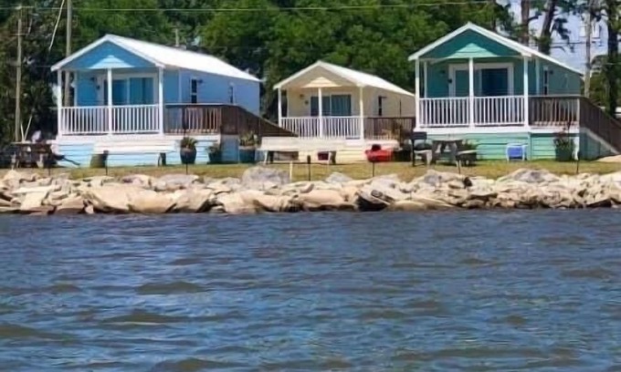 Our waterfront cottages are just a short drive to some of the area's favorite restaurants, breweries and 7 minutes from Saint George Island. Throw a line from the dock, head out on your boat or hit the water in your kayak. They can accommodate up to 6 guest & feature a fully stocked kitchen, bathroom, queen bedroom, bunk beds, pull-out-coach, flat screen TV's & a back porch overlooking the bay.
