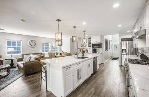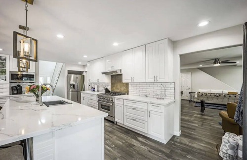 Lotus House is located in a quiet residential neighborhood and overlooks a beautiful scenic forest, as does the relaxing hot tub! This stunning home is newly-renovated and includes three king bedrooms, two of which are en suites, to ensure a quiet night of roomy comfort.