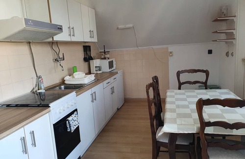 Info: Comfortable two-storey house is situated in a sunny and idyllic location in a green residential area in a quiet street. Fenced, well-kept garden plot for shared use with meadow, fruit trees, flowers and shrubs. If you don't feel like eating out in one of the many good restaurants, you can also barbecue in the garden. Car park in the courtyard. Owner lives separately on the ground floor.