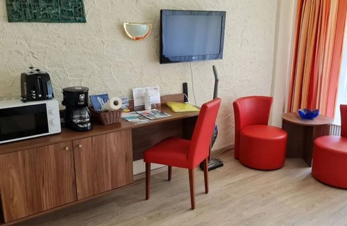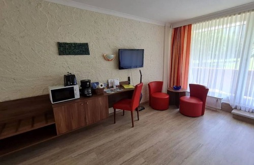 The flat "Mit Bergblick am Golfplatz" is located in a part of a former hotel complex at the Salzkammergut golf course in St. Wolfgang and creates a pleasant setting for your stay with a magnificent mountain view. The 34 m² accommodation consists of a living/bedroom, a kitchenette, 1 bathroom with separate WC and thus offers space for 2 people. Facilities include Wi-Fi, TV and a selection of children's books and toys. A baby cot can be provided for a fee. A washing machine and dryer are available for shared use in the basement (for a fee).