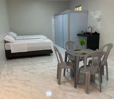 Flats Teles 2 offers accommodations in Palmas, 6.6 miles from Palmas Bus Station and 9.1 miles from Cesamar Park. This vacation home offers free private parking, full-day security, and free Wifi. The air-conditioned vacation home is composed of 1 separate bedroom, a fully equipped kitchenette with a stovetop and a minibar, and 1 bathroom. Towels and bed linen are featured in the vacation home. The accommodation has a fireplace. Girassois Square is 10 miles from the vacation home, while Araguaia Palace is 11 miles away. Brigadeiro Lysias Rodrigues Airport is 3.1 miles from the property.