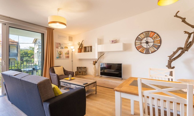 The accommodation is equipped with the following items: garden, barbecue, iron, internet (Wi-Fi), balcony, TV.