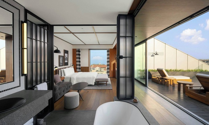 GeneralSquare feet - 657, Number of living rooms 0, Number of bedrooms - 0, Yard, Number of bathrooms - 1, Private bathroom, Square meters - 61, Separate bathtub and shower, No rollaway/extra beds, No cribs (infant beds), Ping - 18, Rainfall showerhead, Bed count minimum 1, Bed count maximum 1, City view |